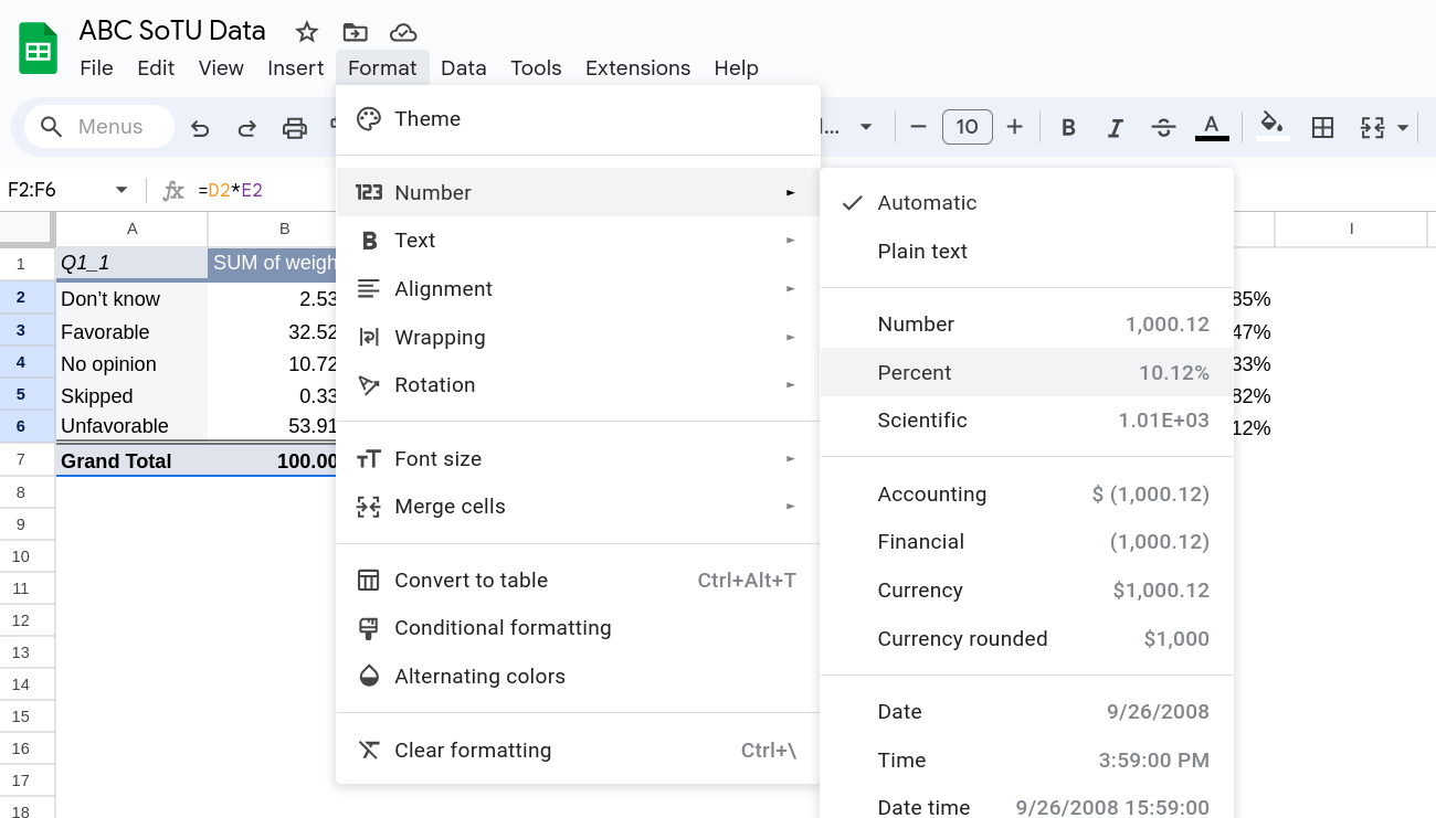 One last thing to note is that we can update how the cells are displayed by highlighting them and selecting Format