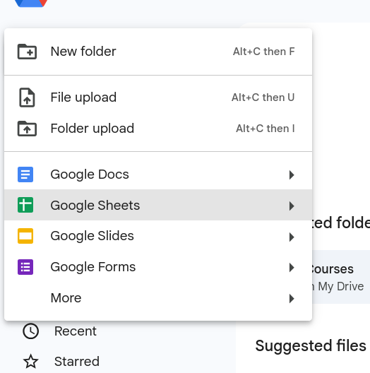 This tutorial is going to assume that you have a csv file already that you want to analyze. The easiest way to upload data is to start by creating a brand new Google Sheet document (see Figure 1).