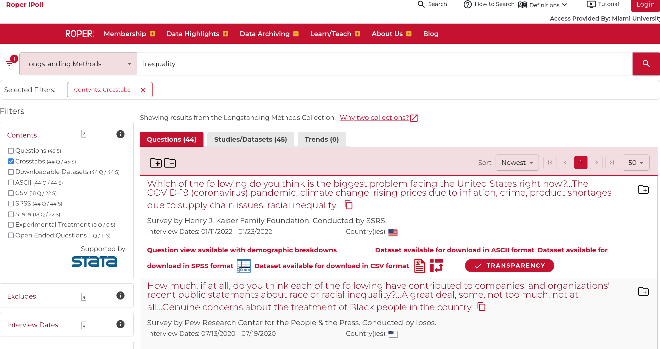 If you want to look at differences across subgroups you can check the “crosstabs” option which will limit your search to polls that include crosstabs