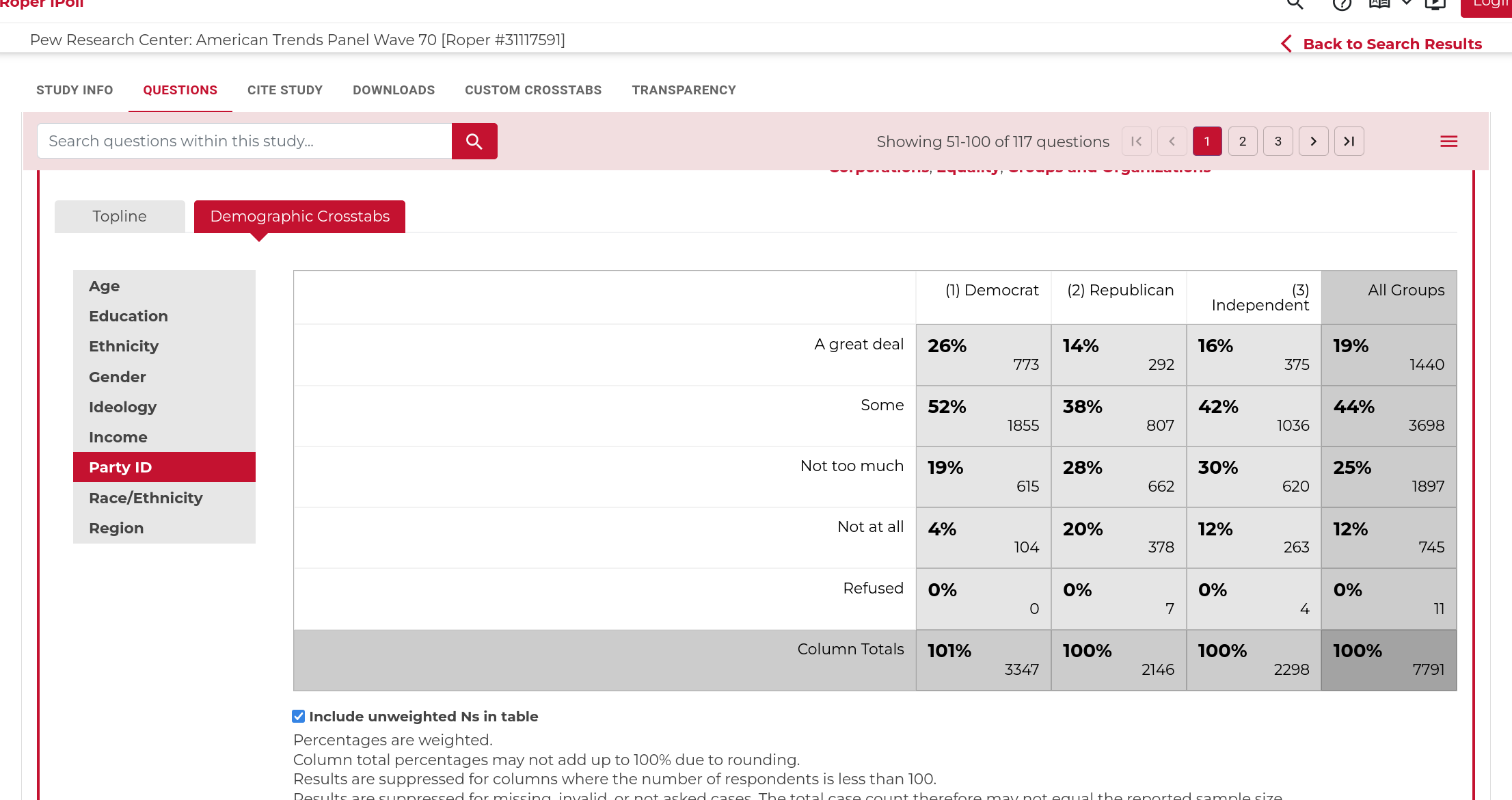 Once you get there you can select the “Demographic Crosstabs” to look at responses across different groups.