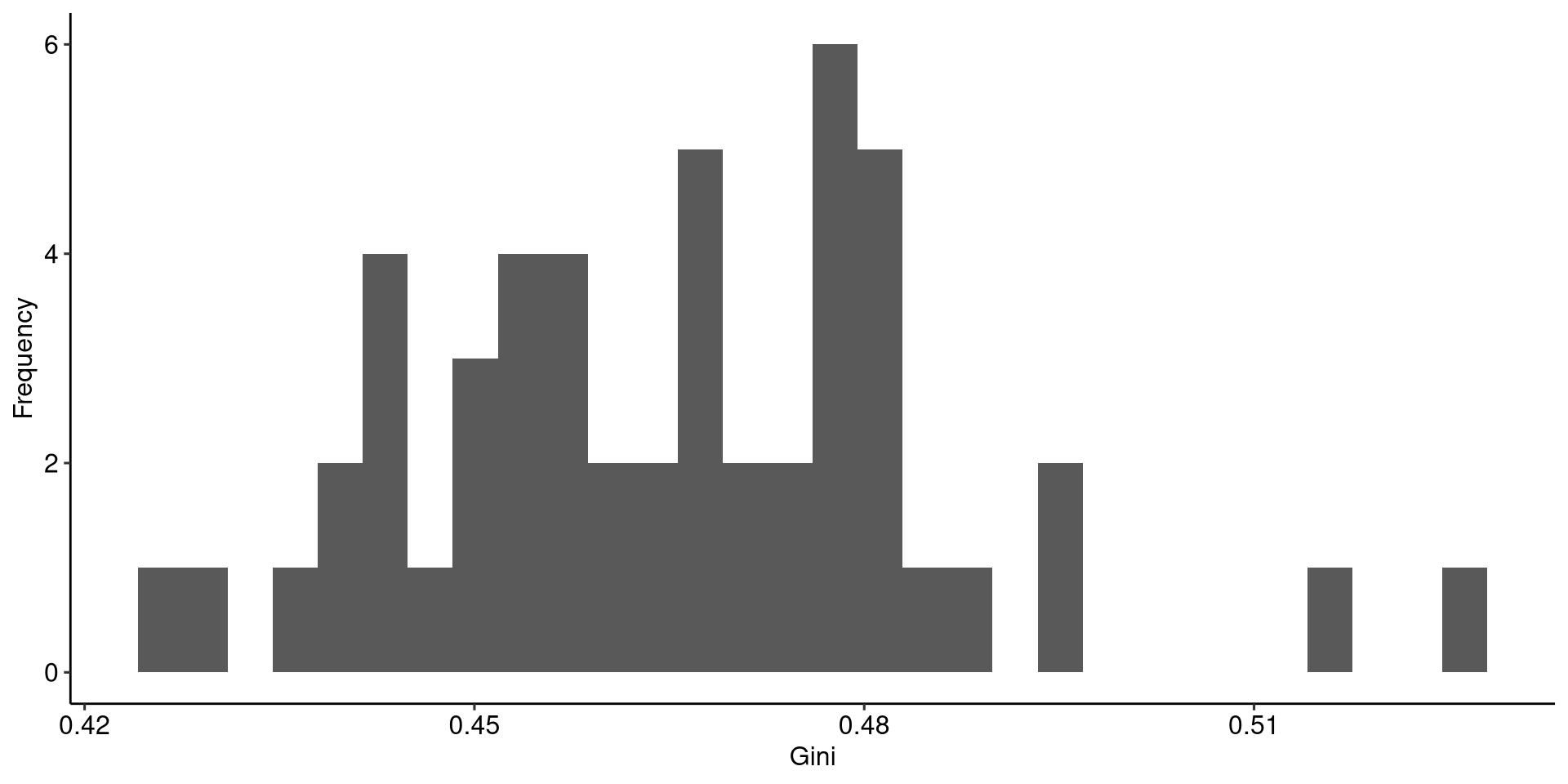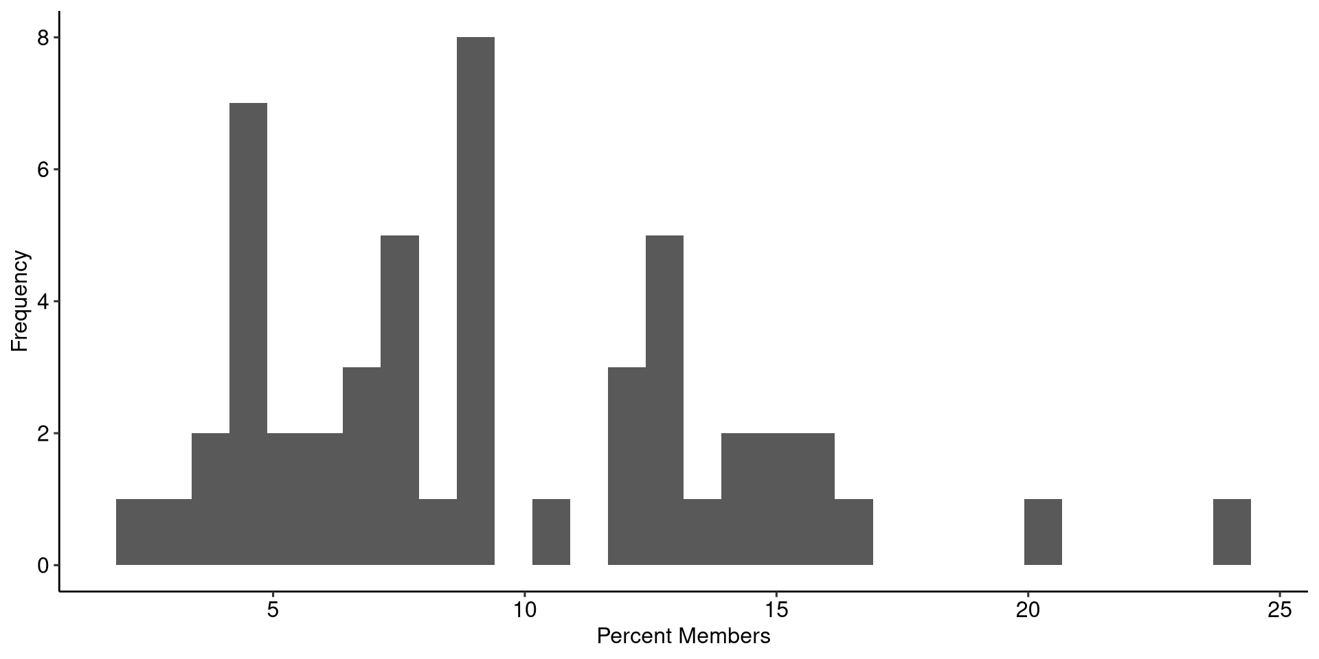 We can look then at how our inequality and membership relate to each other by plotting them and fitting a line of best fit.